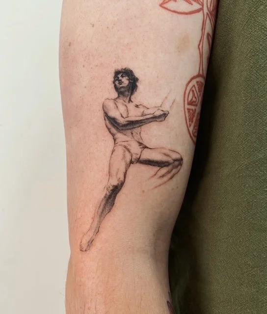 He was quickly drawn to the city's vibrant tattoo community, and seeking to expand his creative repertoire, began his apprenticeship at Atelier Eva. Drawing from his rigorous background in classical painting and artistic anatomy, Lorenzo approaches each tattoo with a painter’s eye for composition, flow, and enduring beauty.